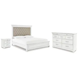 Kanwyn King Upholstered Panel Bed, Dresser, Mirror and Chest