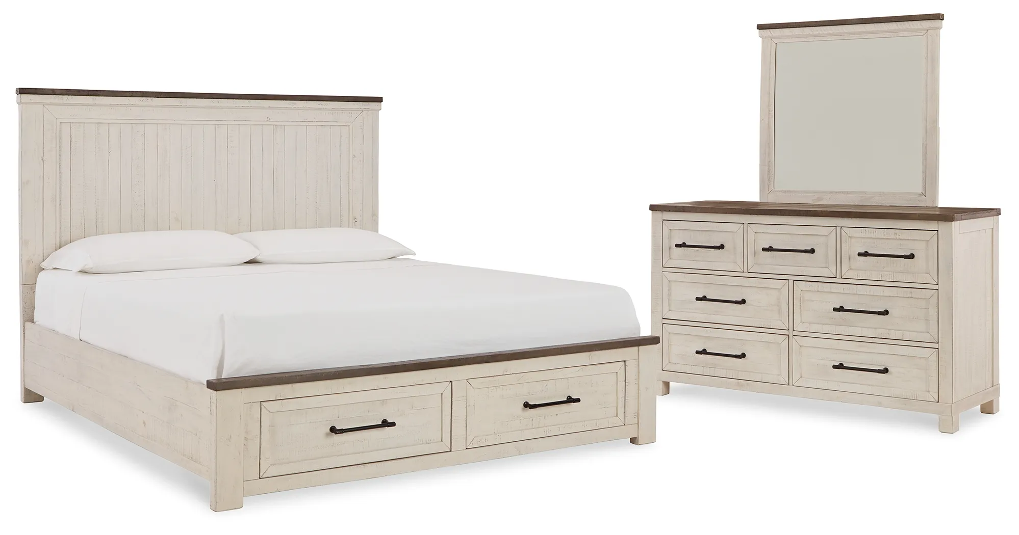 Dreaming of a delightfully vintage home? Make it a reality with this bedroom package. A two-tone finish of distressed white and weathered gray is casually charming. Aged iron-tone bar pulls on the set's smooth-gliding drawers complete this curated approach to farmhouse chic.