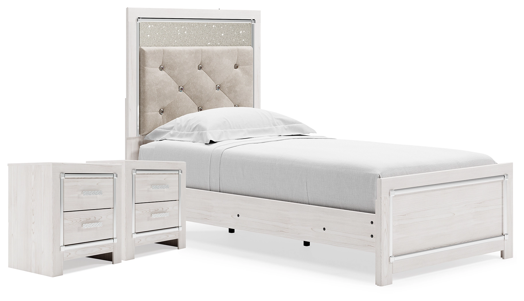 Altyra Twin Upholstered Panel Bed and 2 Nightstands