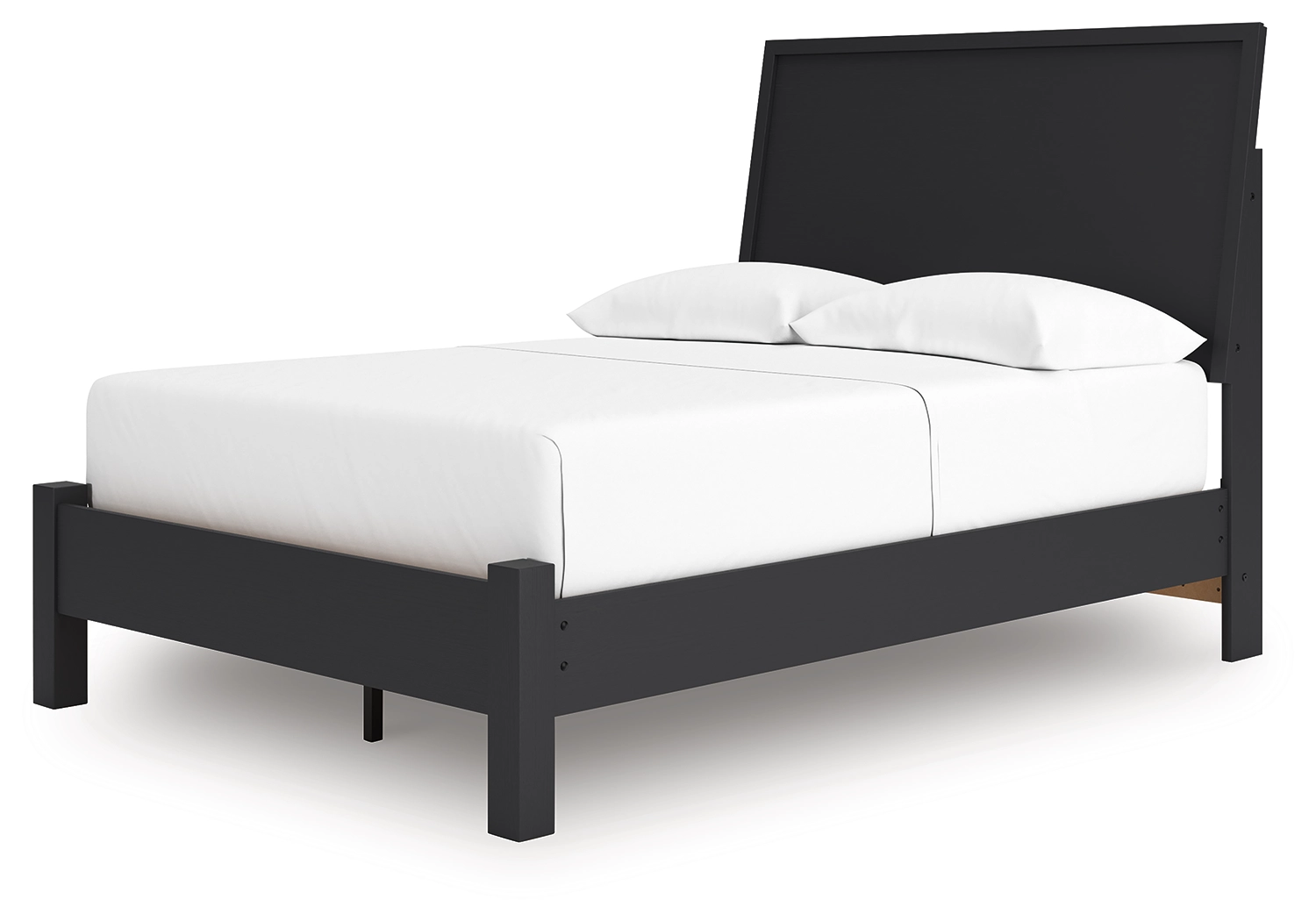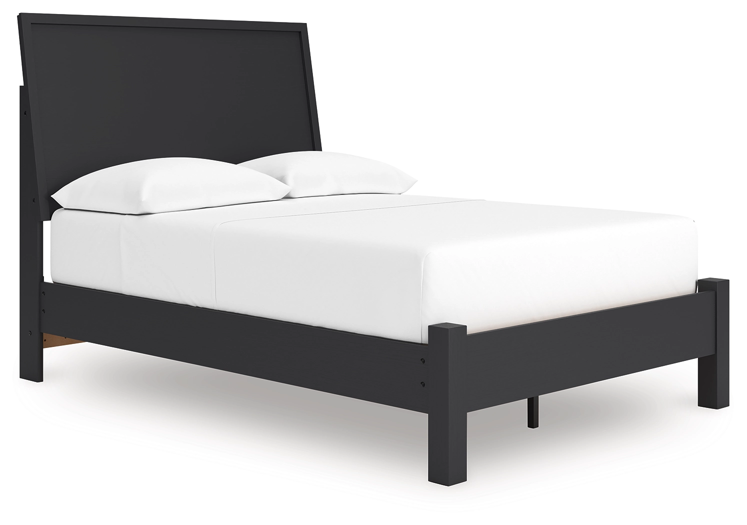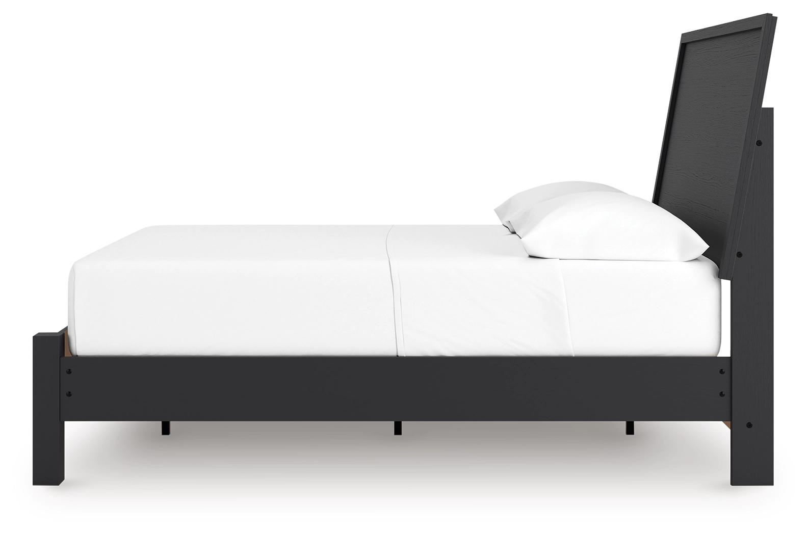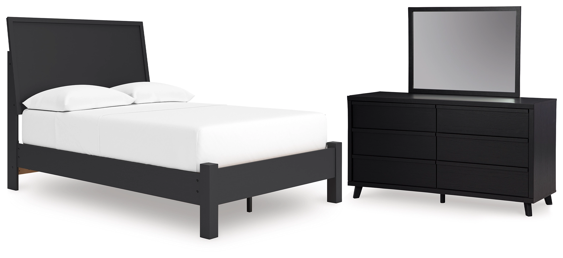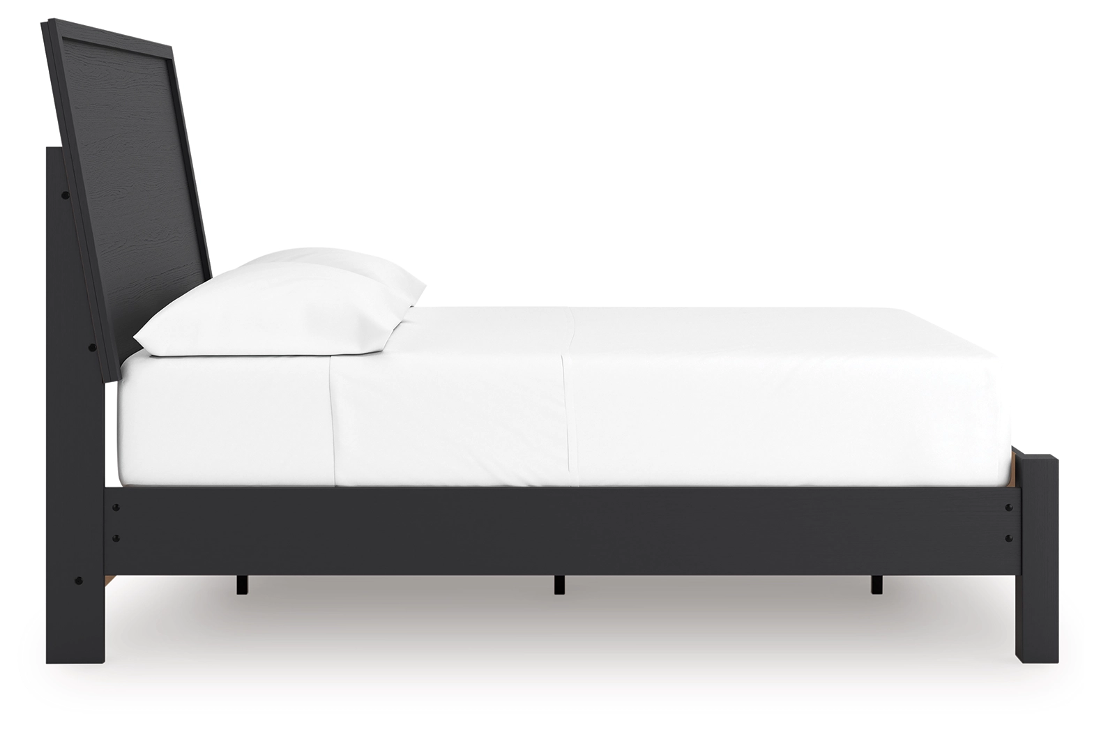 Sophisticated style for the savvy shopper. This bedroom package prioritizes affordable, on-trend design. Its subtle replicated texture recalls the natural beauty of wood, highlighting the clean-lined styling. And a matte black finish savvily suits different approaches to modern aesthetics.