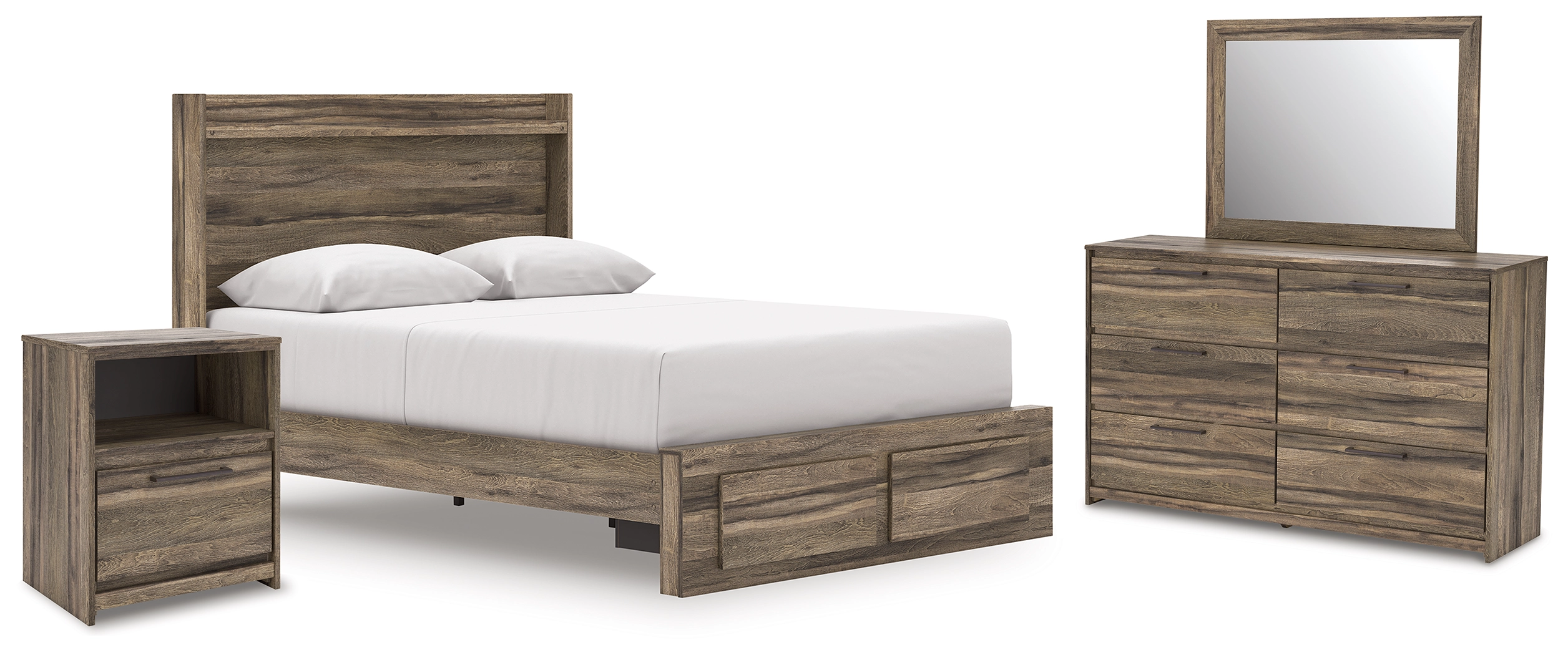 Elbrim Queen Panel Storage Bed, Dresser, Mirror and Nightstand