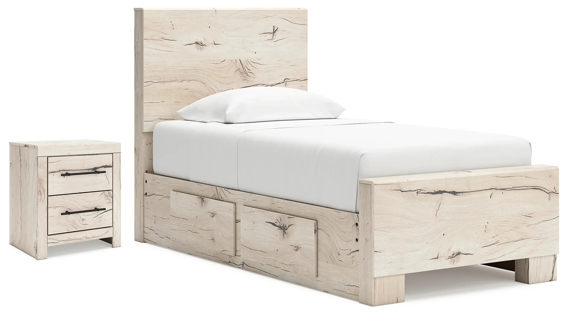 Lawroy Twin Panel Bed with Storage and Nightstand