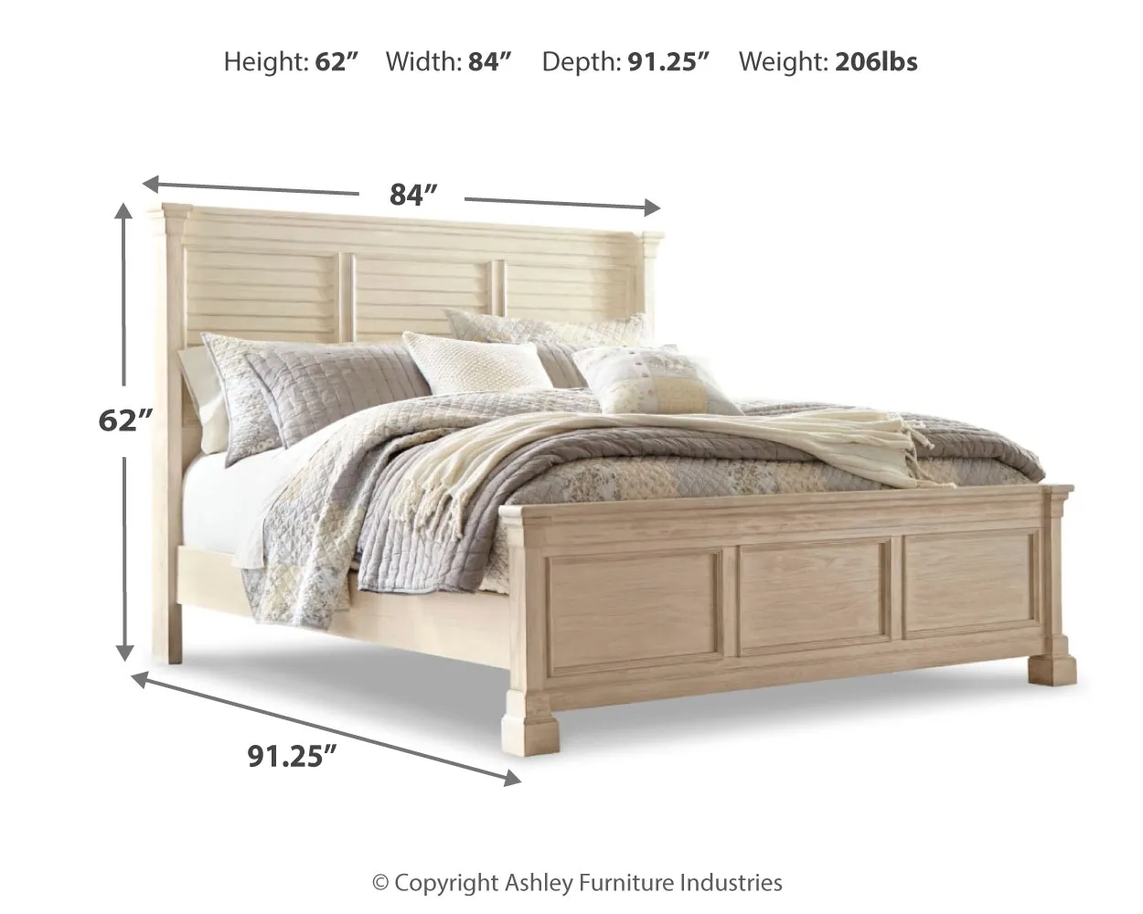 This louvered queen panel bed exudes a mix of styles, including shabby chic, casual cottage, and a touch of down home country. Textured antique white finish works with shelter style headboard with lattice design for a vintage look that will endear for years. Mattress and foundation/box spring available, sold separately.