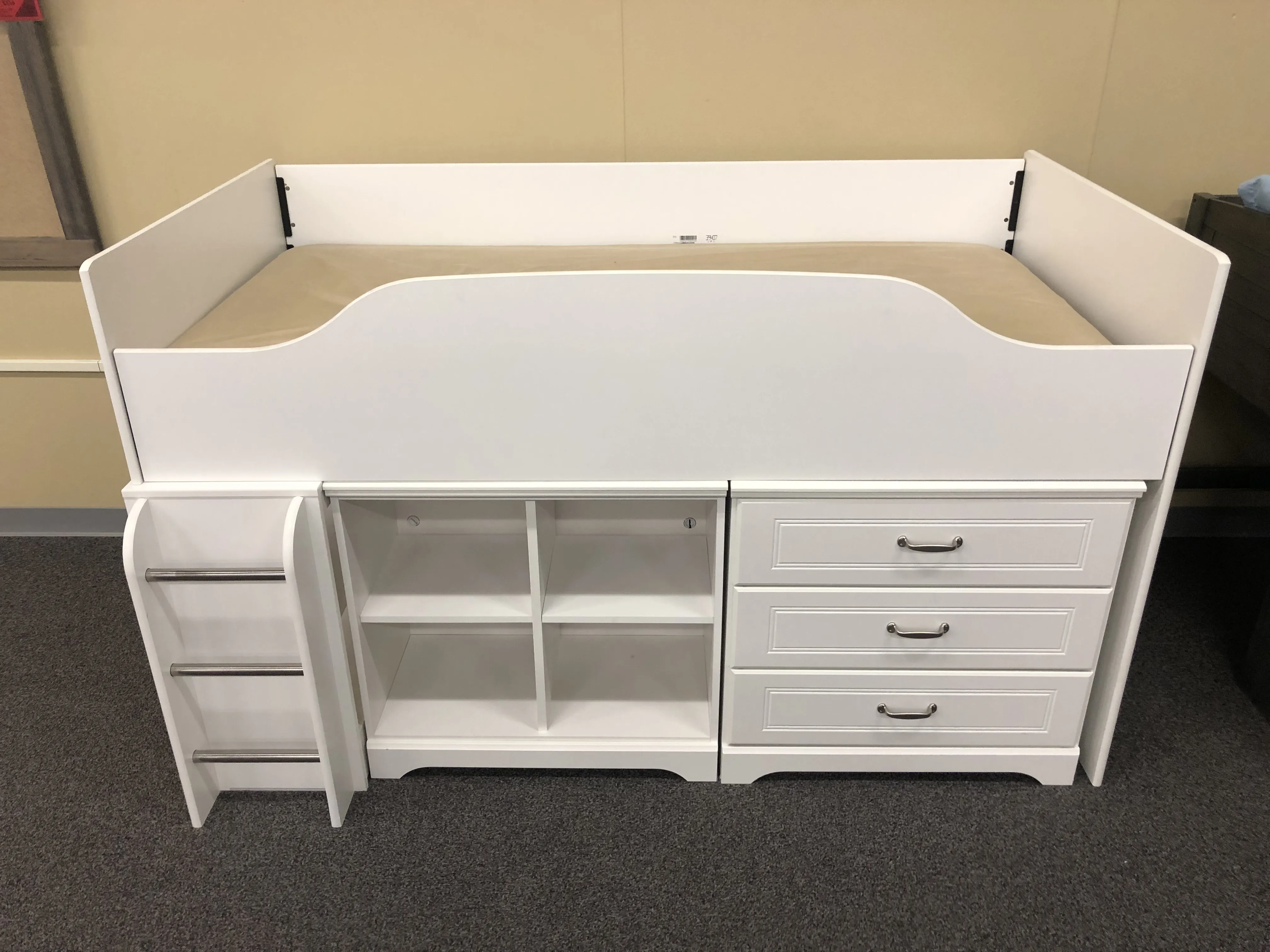 This bed's clean lines and versatile white finish complement virtually every style of décor. Whether her new favorite color is pink, purple or blue, her bedroom furniture will be a mainstay. Six built-in drawers and a multi-compartment bookcase create much-needed storage. Mattress available, sold separately.