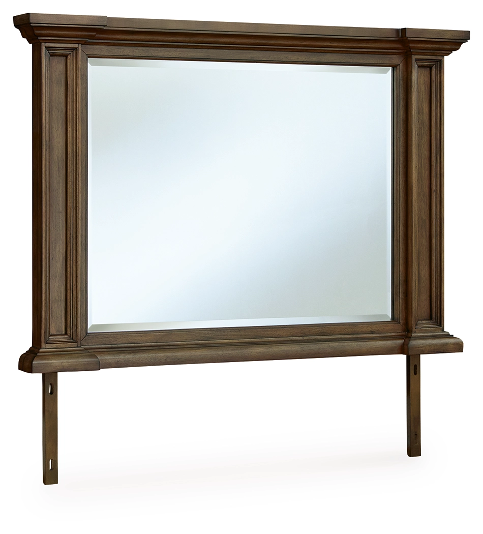 This bedroom mirror is made with solid wood. Pairs with other items in the series to make a dresser and mirror set.
