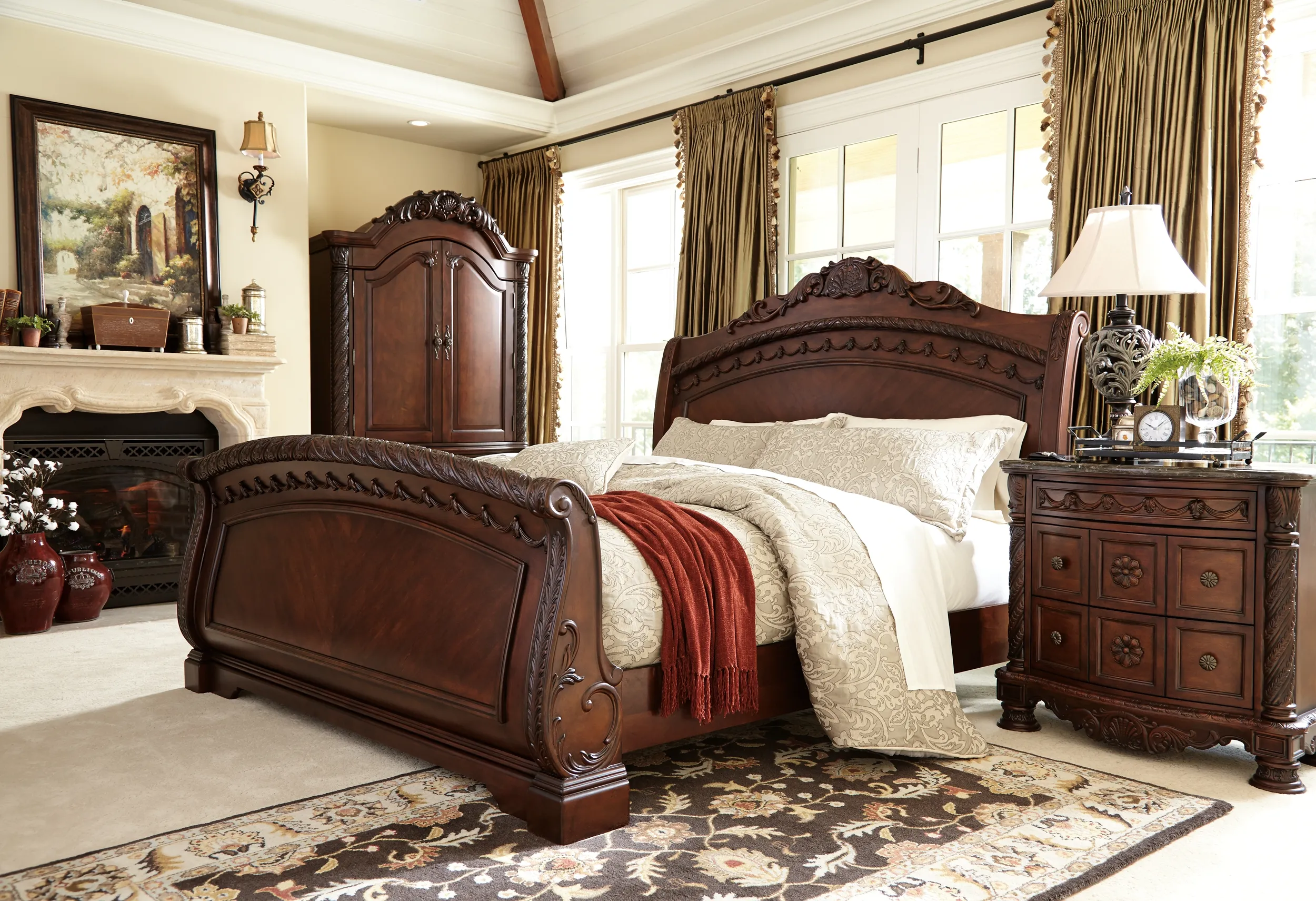 Inspired by the grandeur and grace of Old World style, this nightstand is nothing short of stunning. A choice blend of materials is accented by detailed ornamental appliques. A marble parquetry top tops off the opulence. Three smooth-gliding drawers serve your bedside storage needs exceptionally well.
