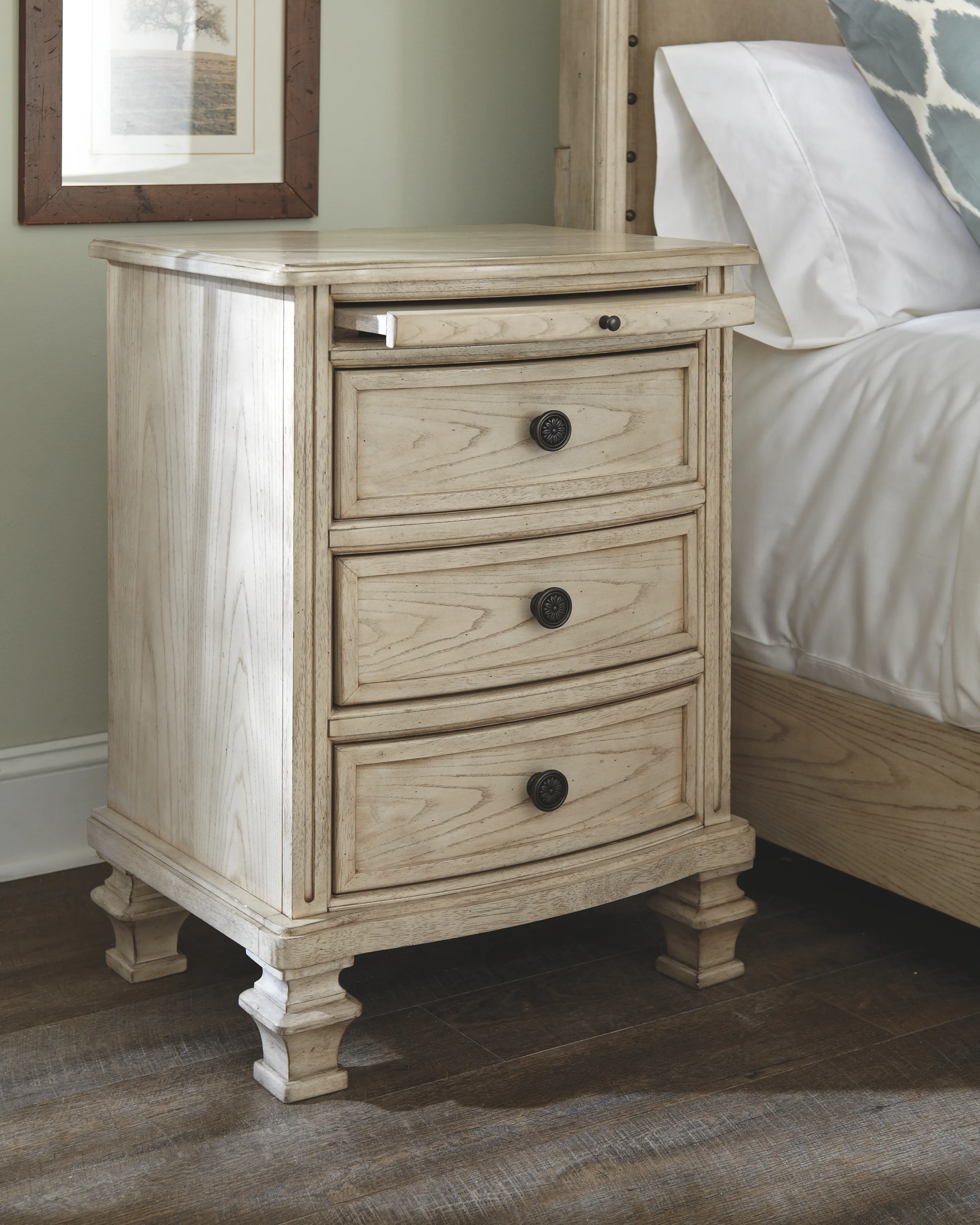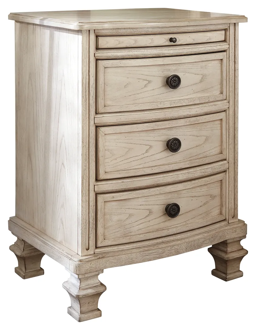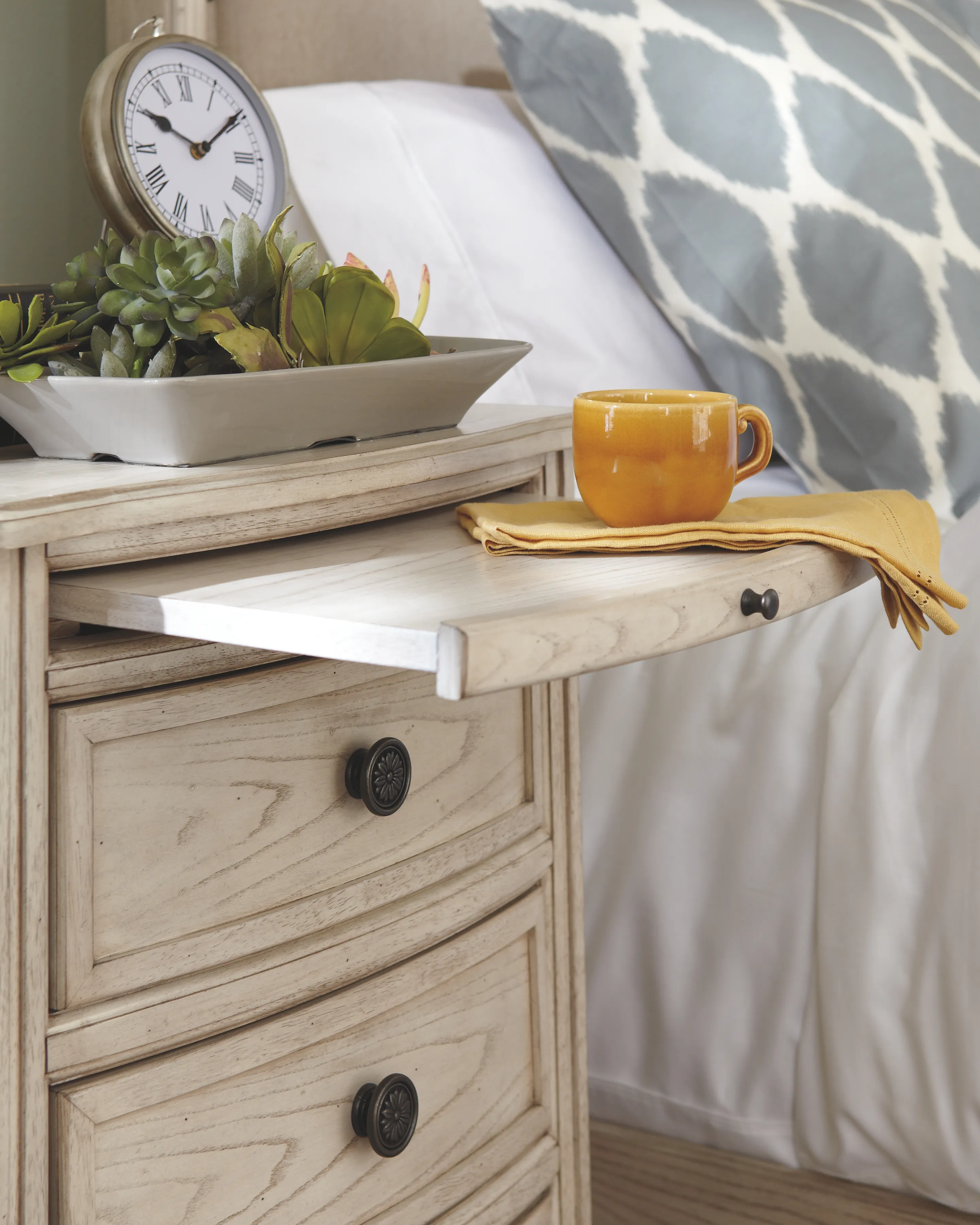 There's nothing like vintage-inspired style to make you feel at ease. Case in point: this nightstand. Bathed in a dreamy finish with gently distressed accents and elegantly turned details, it's got all the makings for a beautifully restful retreat. A pull-out tray provides added surface space while electrical outlets with USB charging stations are great if you love bringing your laptop to bed.