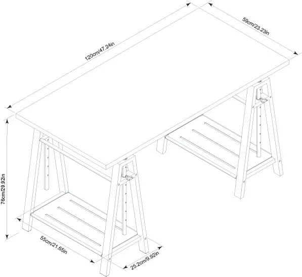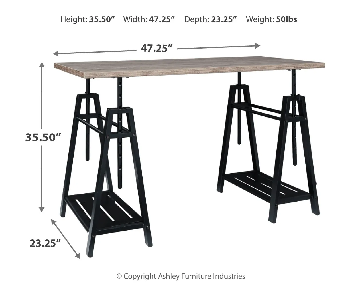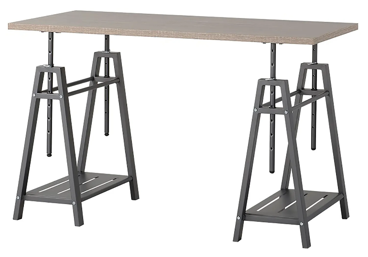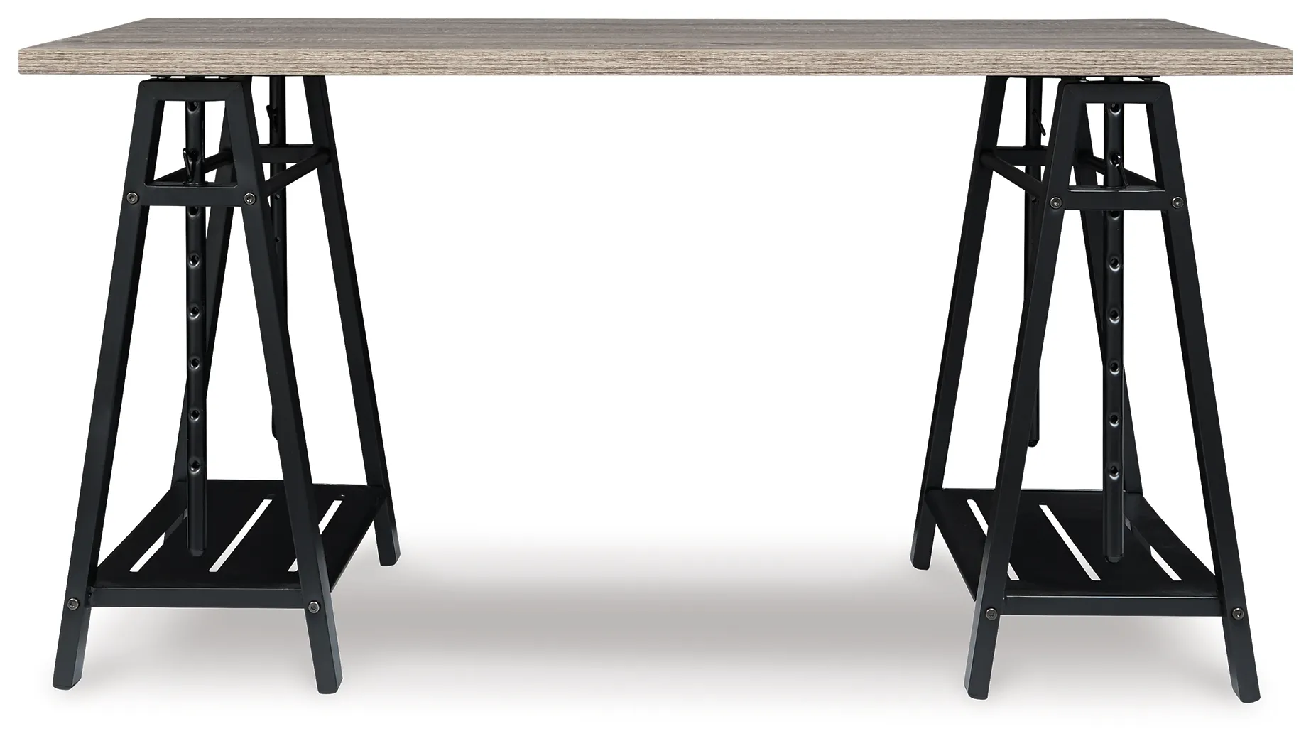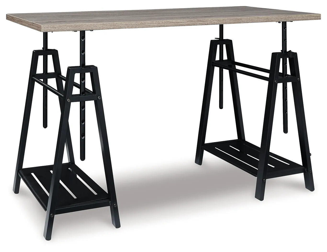 A look that's sure to work wonders in your modern farmhouse, this sawhorse adjustable height desk is right on trend. Reclaimed finished top and industrial gray metal base make a cool combination. Whether you're sitting, standing, typing or crafting, you're sure to love the desk's unique 8-level adjustable height feature.
