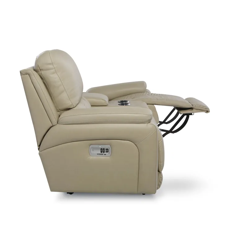 Take relaxation to the max with our Greyson loveseat. Pillow top arms surround you in comfort while plush seats with chaise legrests give you plenty of room to stretch out. Enjoy effortless relaxation with dual-sided push button recline, then optimize your comfort with independently adjustable power-tilt headrests that cradle your head and neck as you watch TV, read and more. A convenient middle console provides hidden storage and two handy cup holders, while built-in USB ports on both left and right outside arms keep you connected. Upgrade to our Go Cordless battery pack to recline anywhere in a room with no need for an electrical outlet. Add modern style and major comfort to your home with Greyson.