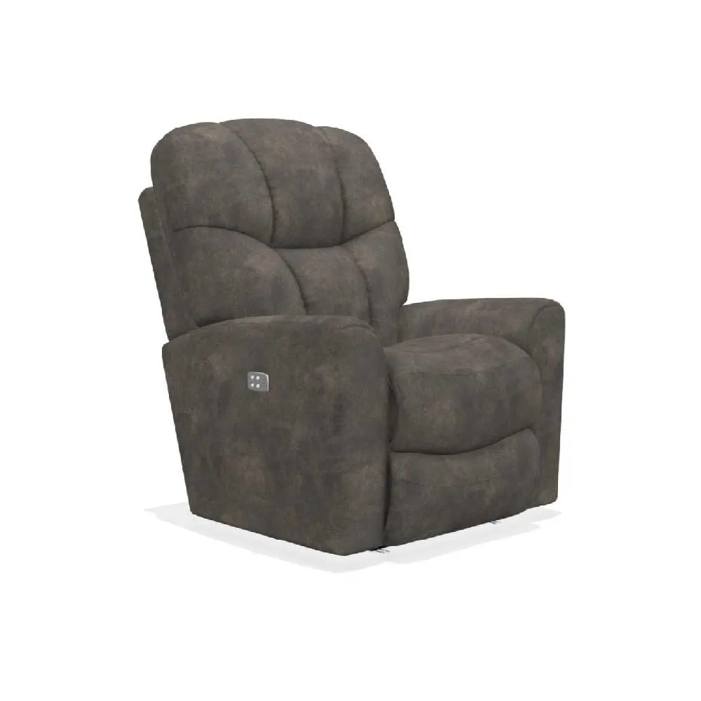 For casual comfort that blends with any decor, the Rori Power Rocking Recliner is a perfect addition to any room. Sure to become a family favorite, Rori features a sculpted bucket seat with a one-piece chaise and legrest that cradles your body in comfort. Thin arm pads give Rori a clean and tailored shape, while the decorative top stitching is a touch that’s totally up to date. Simply use the side-mounted 4-button control panel to recline and raise your feet independently for a wide range of relaxing positions. There’s even a built-in USB port to power your phone or tablet. When you’re not reclining, it’s a relaxing rocker with a smooth, graceful motion. Make it yours with your choice of fabrics and other available upgrades. DETAILS • Casual style power recliner with a clean, neat silhouette • Sculpted bucket seat • One-piece chaise and legrest create a continuous zone of comfort • Thin padded arms blend in with existing decor • Double-needle topstitching on the chaises, arm posts and outside arms • Rocks and reclines for total comfort • Recline and raise your feet independently with the touch of a button • Back reclines with or without raising the legrest • Built-in USB port powers your smartphone or tablet • Double-picked blown fiber fill for improved shape retention • High grade foam seat cushion maintains its comfort and appearance • Premium grade fabrics and leathers tested to resist wear and fading • Handcrafted in the U.S.A. with U.S. and imported parts • Includes our Limited Lifetime Warranty