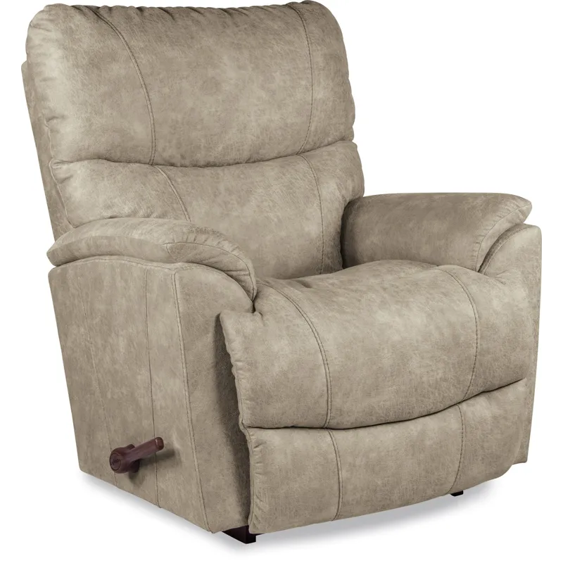 An updated silhouette, complete with slightly flared arms and a sleek tall back give Trouper a look that’s fresh and contemporary. It’s also one comfortable recliner. The sculpted bucket seat cradles you in softness while the padded split back provides superb head and lumbar support. Simply use the convenient handle on the outside arm to raise the legrest for reading, relaxing or watching TV. When you’re not reclining, it’s a relaxing rocker with a smooth, graceful motion.