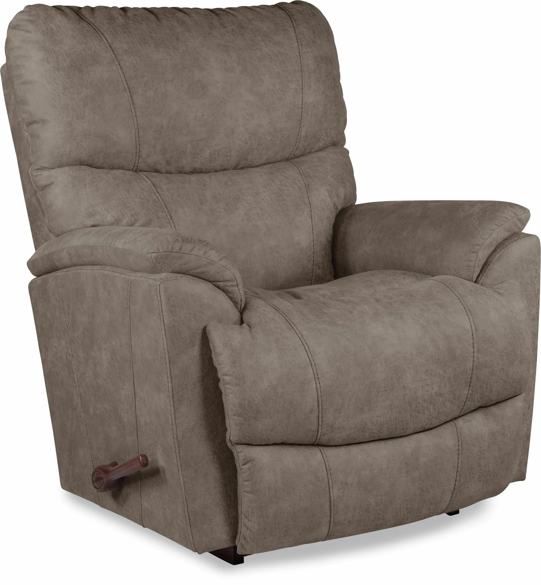 An updated silhouette, complete with slightly flared arms and a sleek tall back give Trouper a look that's fresh. It's also one comfortable rocking recliner. A sculpted bucket seat cradles you in softness while providing extra head and lumbar support. A convenient handle allows you to smoothly and easily adjust the legrest to your preferred position, or rock away the stress of the day. When it comes to comfort, Trouper always comes through.