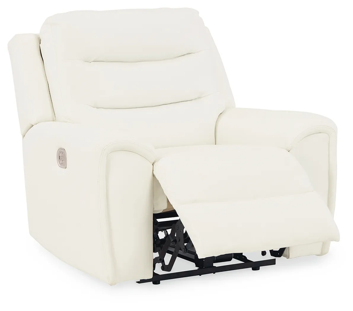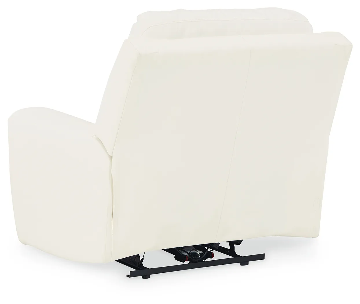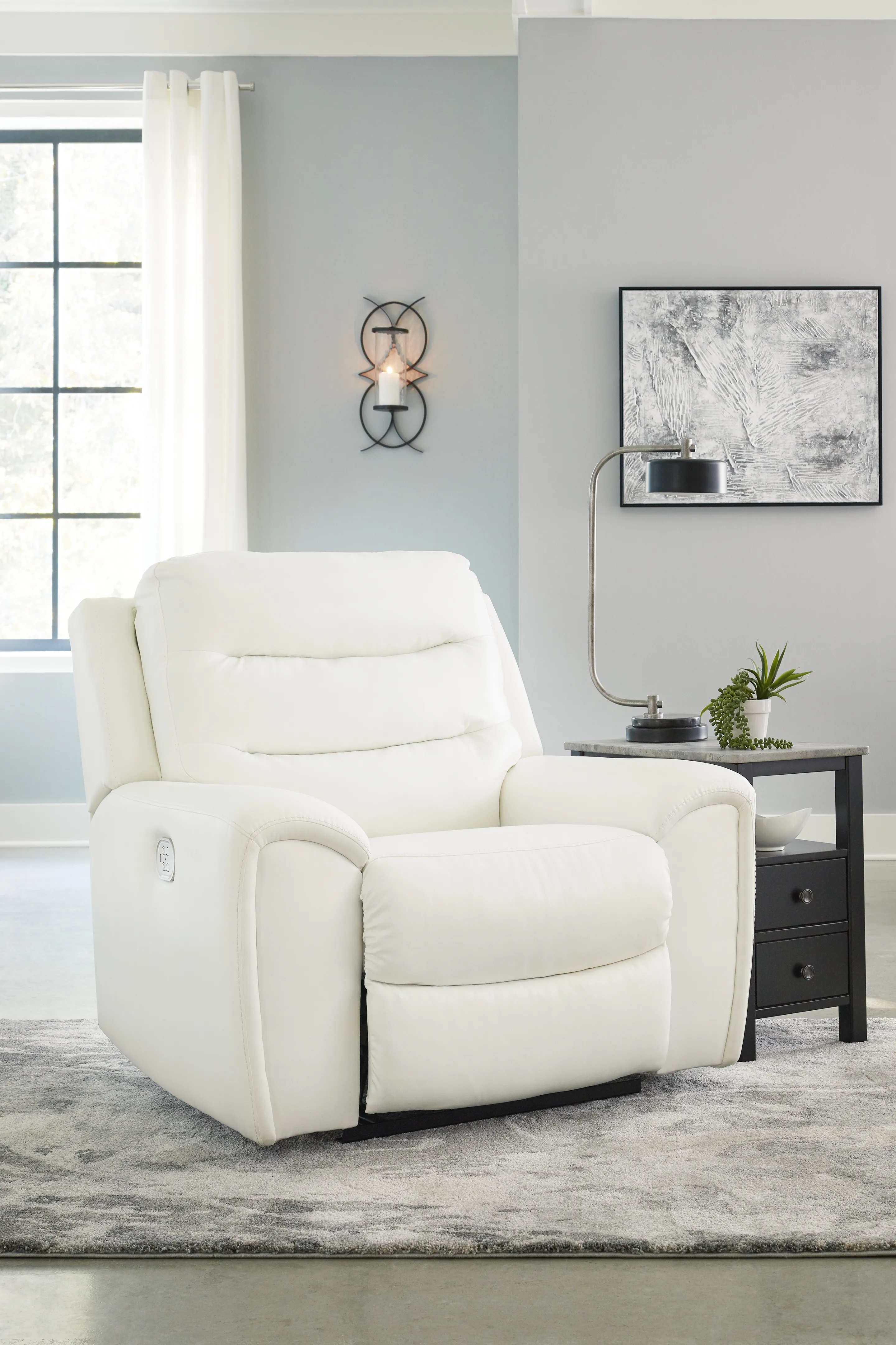 With its decidedly contemporary styling, this power recliner has a sleek sensibility that seamlessly elevates your living room aesthetic. Explore endless possibilities for comfort with its one-touch power control, zero-gravity reclining and adjustable headrest. A triple-tier back and chic white upholstery round out this simply stunning piece.