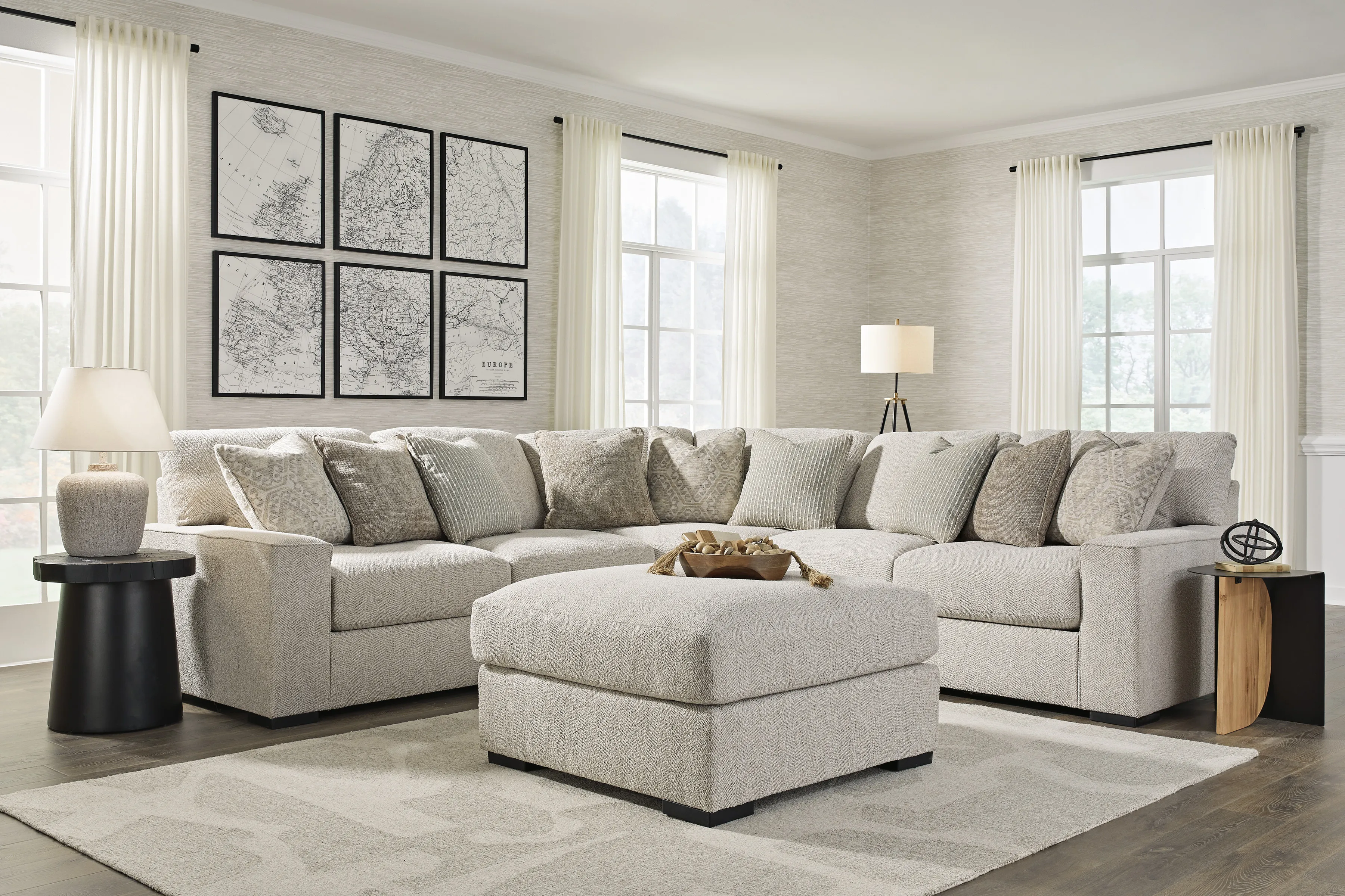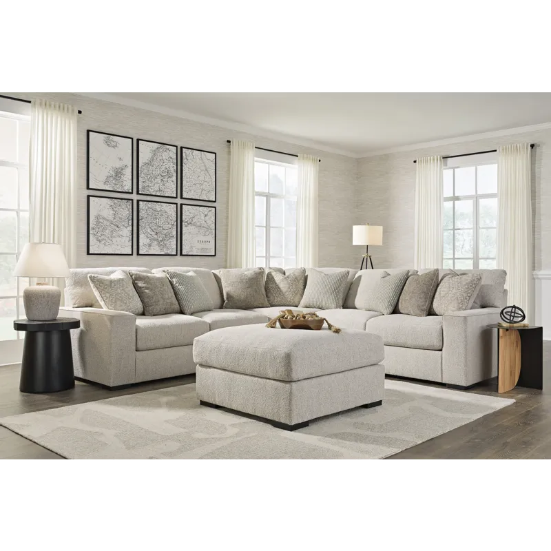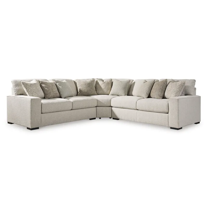 Ballyton 3-Piece Sectional:Â Reminiscent of a fine, subtly patterned herringbone jacket, this casually elegant sectional offers contemporary style in spades. A distinctive curved shape provides plenty of leg room, while soft feather-blend cushions maximize relaxation. Why skimp on comfort and style? With this sectional, you have space to lounge solo or hang out with friends and family.