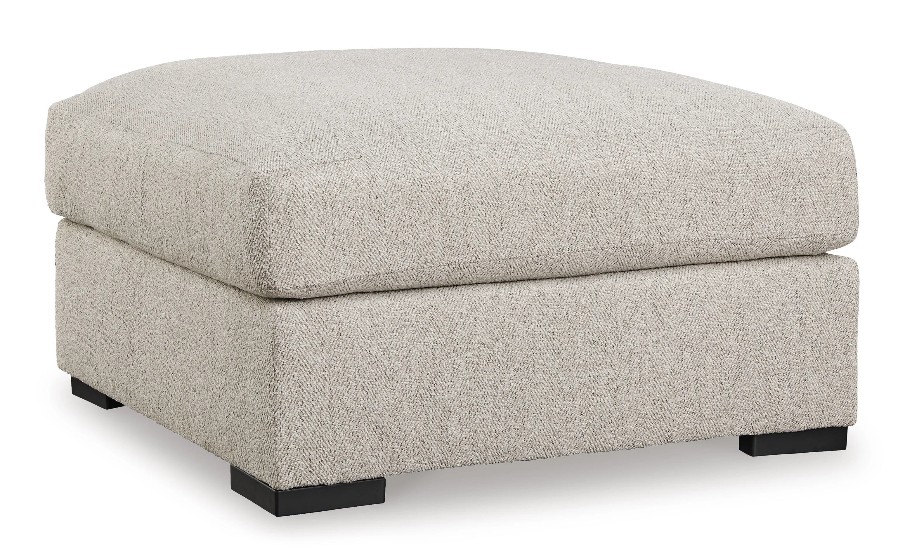 Reminiscent of a fine, subtly patterned herringbone jacket, this casually elegant ottoman offers contemporary style in spades. Its oversized silhouette provides plenty of leg room, while a soft feather-blend top cushion maximizes relaxation. Why skimp on comfort and style? With this ottoman, you have plenty of room to rest your feet and unwind.