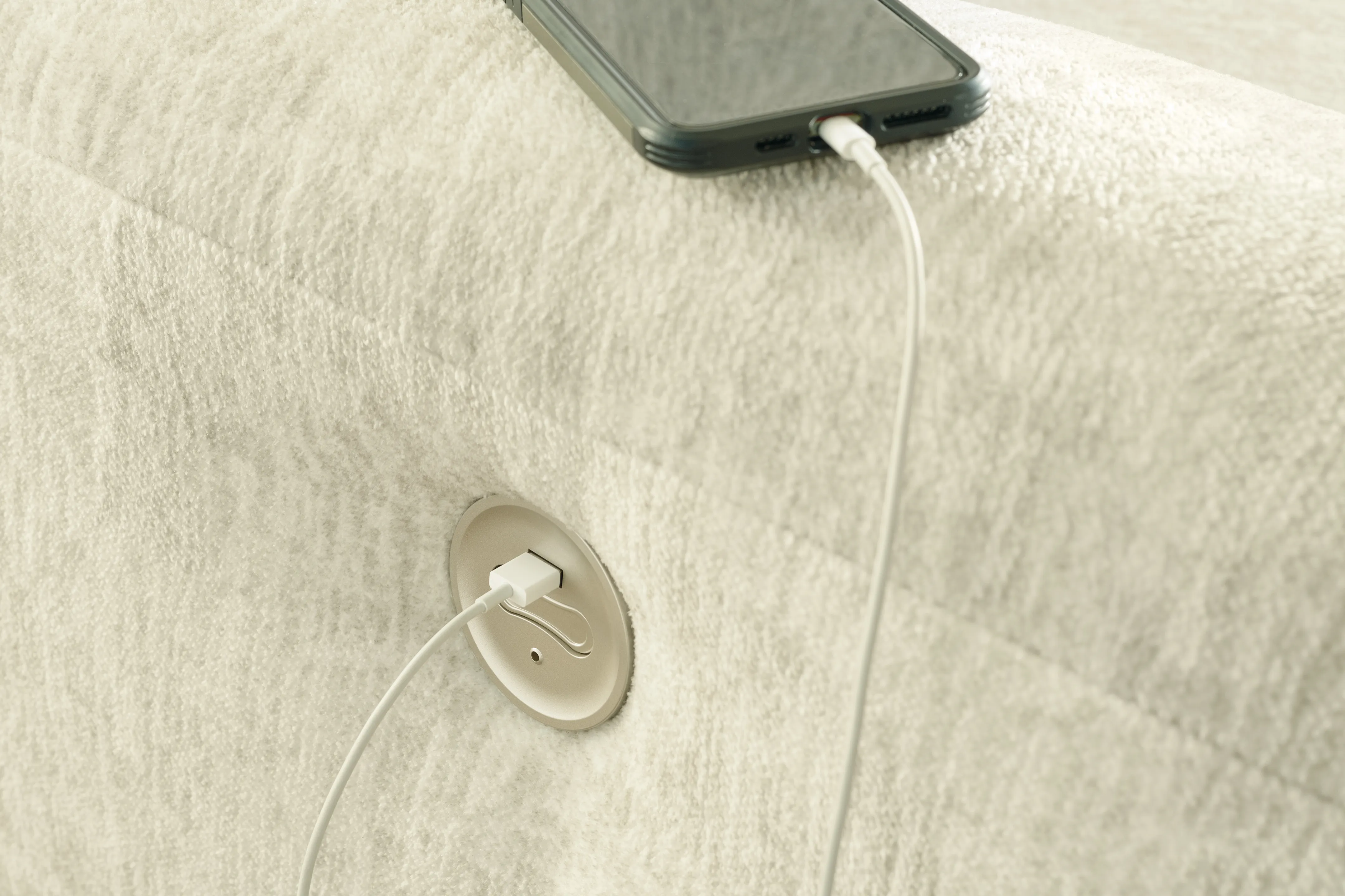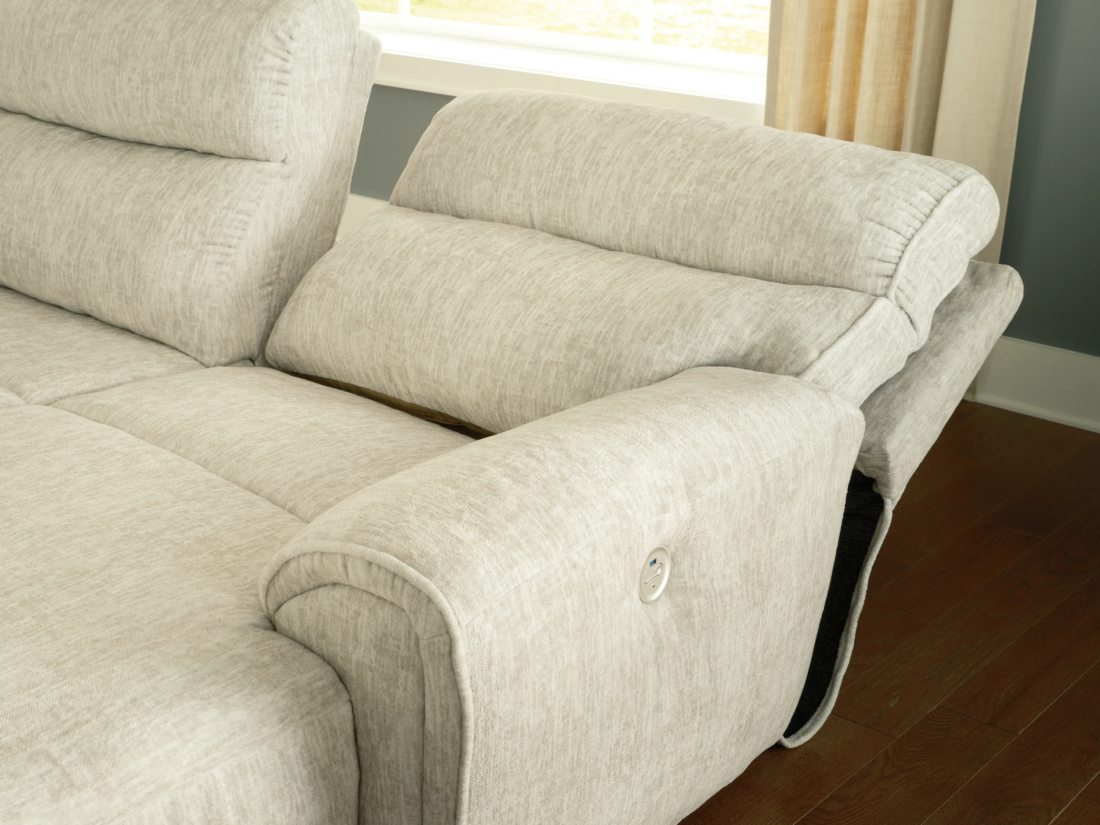 Contemporary design, meet classic comfort. Make your living room something to rave about with the five-star style of the Critic's Corner power reclining sectional. Parchment-hued upholstery has an irresistibly neutral appeal, while one-touch power reclining refines the art of relaxation. Seamlessly pairing with your modern decor, this on-trend sectional meets your high expectations for flair and function.
