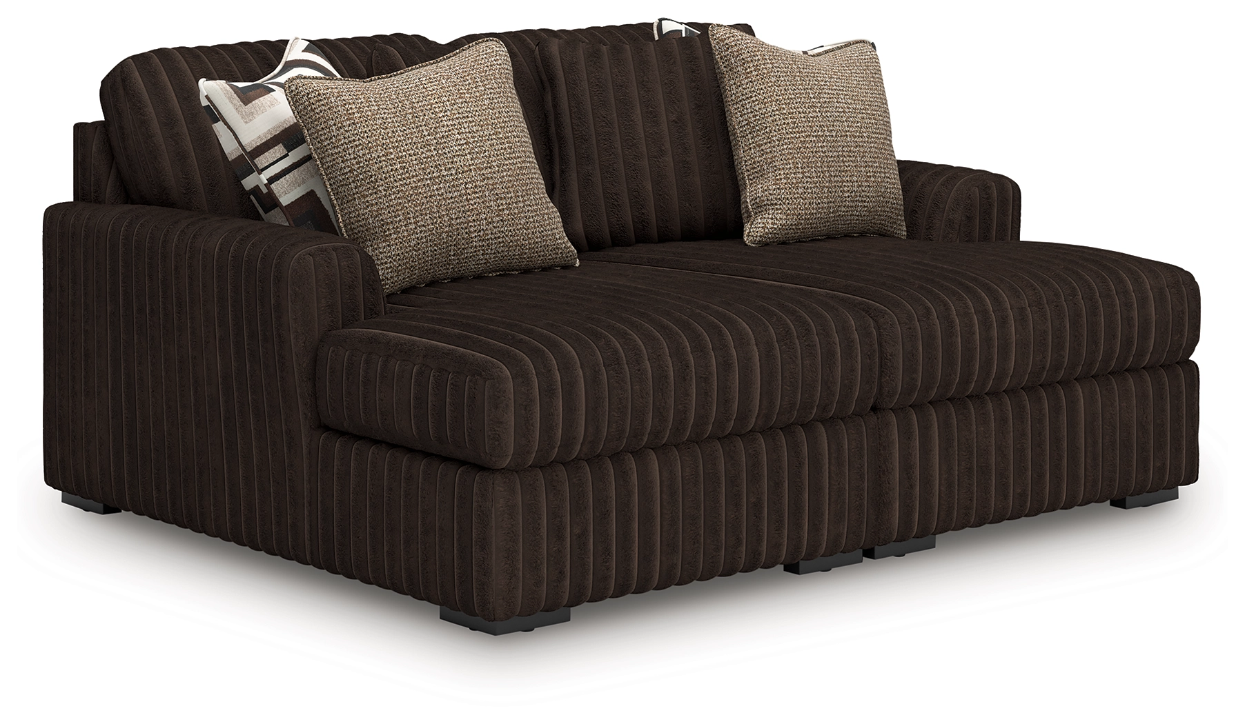 Includes 2 pieces: left-arm facing corner chaise and right-arm facing corner chaise